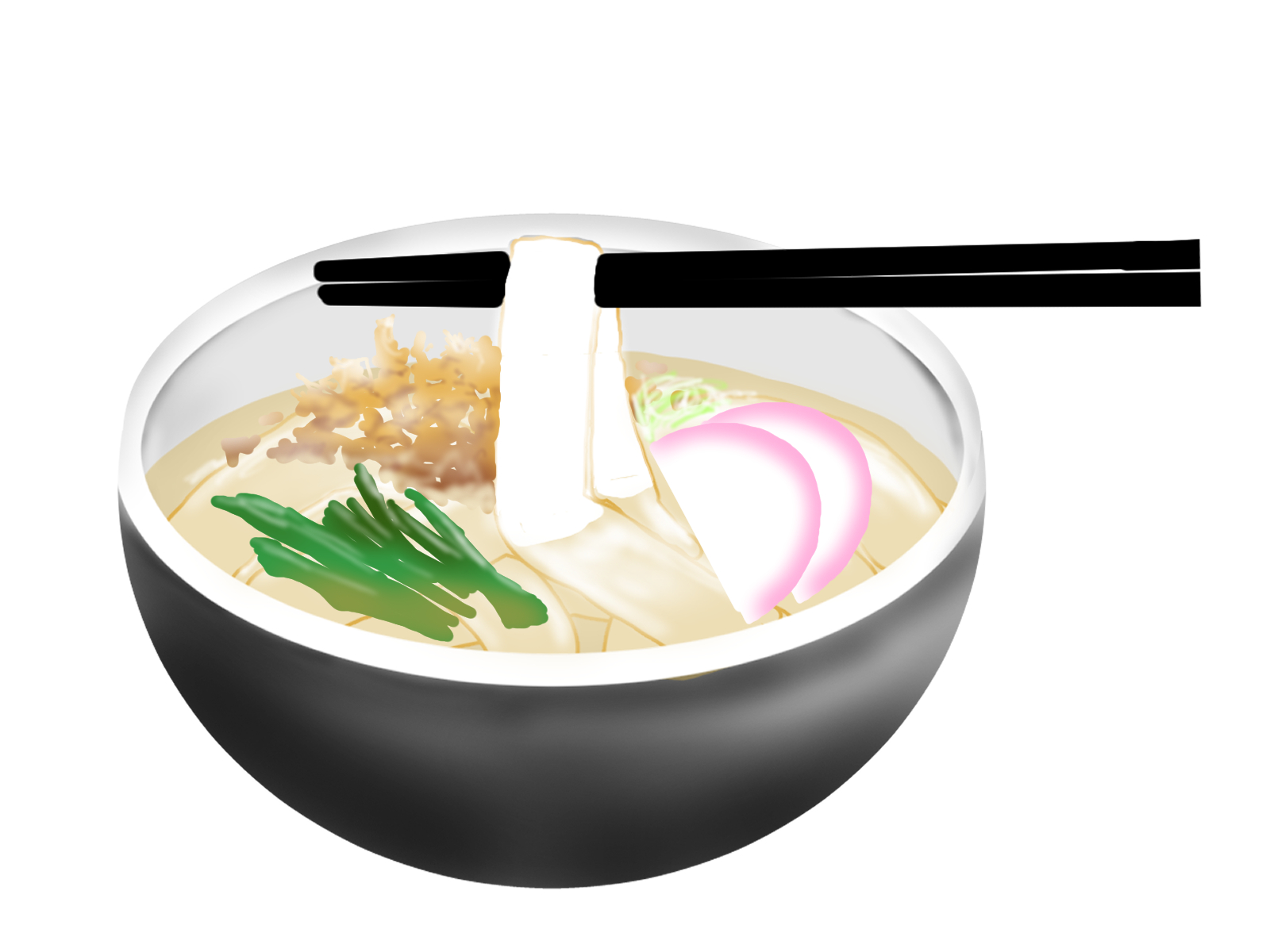 五目きしめん 愛知県の名物きしめんに、玉子焼き、鶏肉、かまぼこ、ほうれんそう、ネギを載せて頂きます。